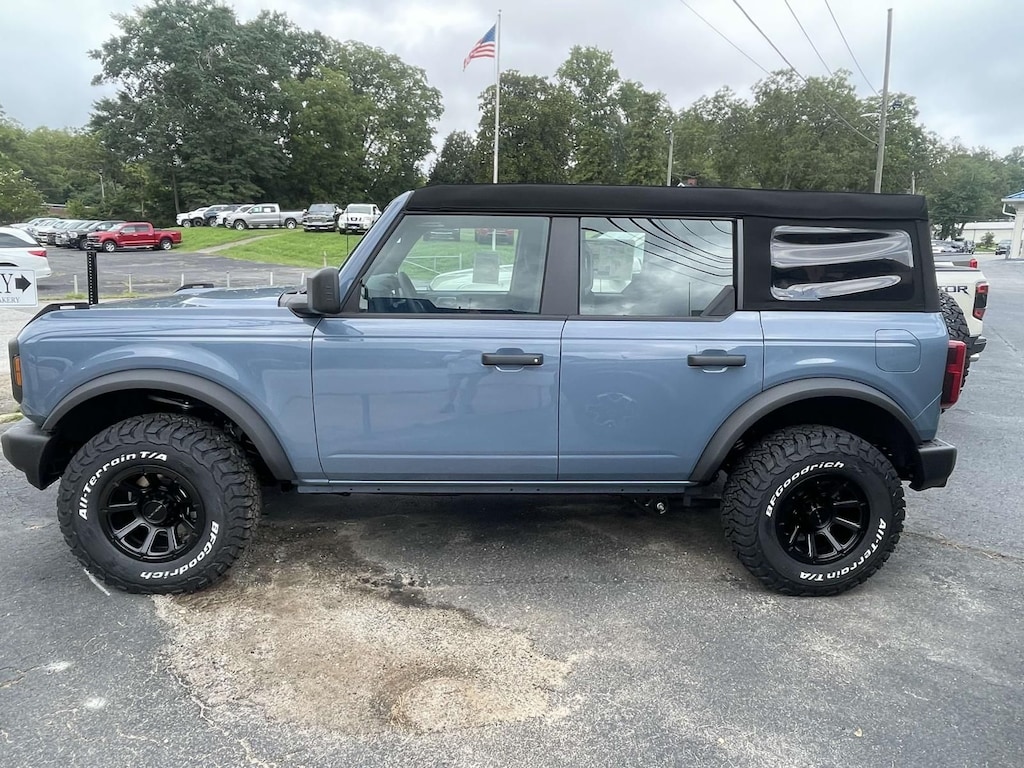 This 2025 Ford Bronco in Azure Gray Metallic Tri-Coat is equipped with. 4WD 10-Speed Automatic 2.3L EcoBoost I-4 ** Bluetooth, ** Apple Car Play / Android Auto, ** Back-Up Camera, ** Moonroof, ** Leather, ABS brakes, Compass, Electronic Stability Control, Heated door mirrors, Illuminated entry, Low tire pressure warning, Remote keyless entry, Traction control.
