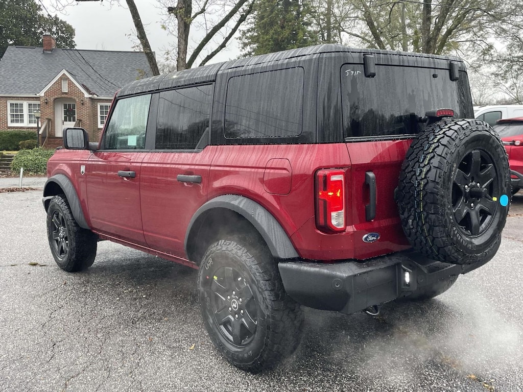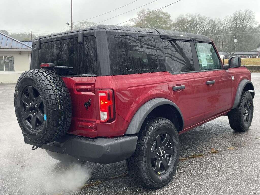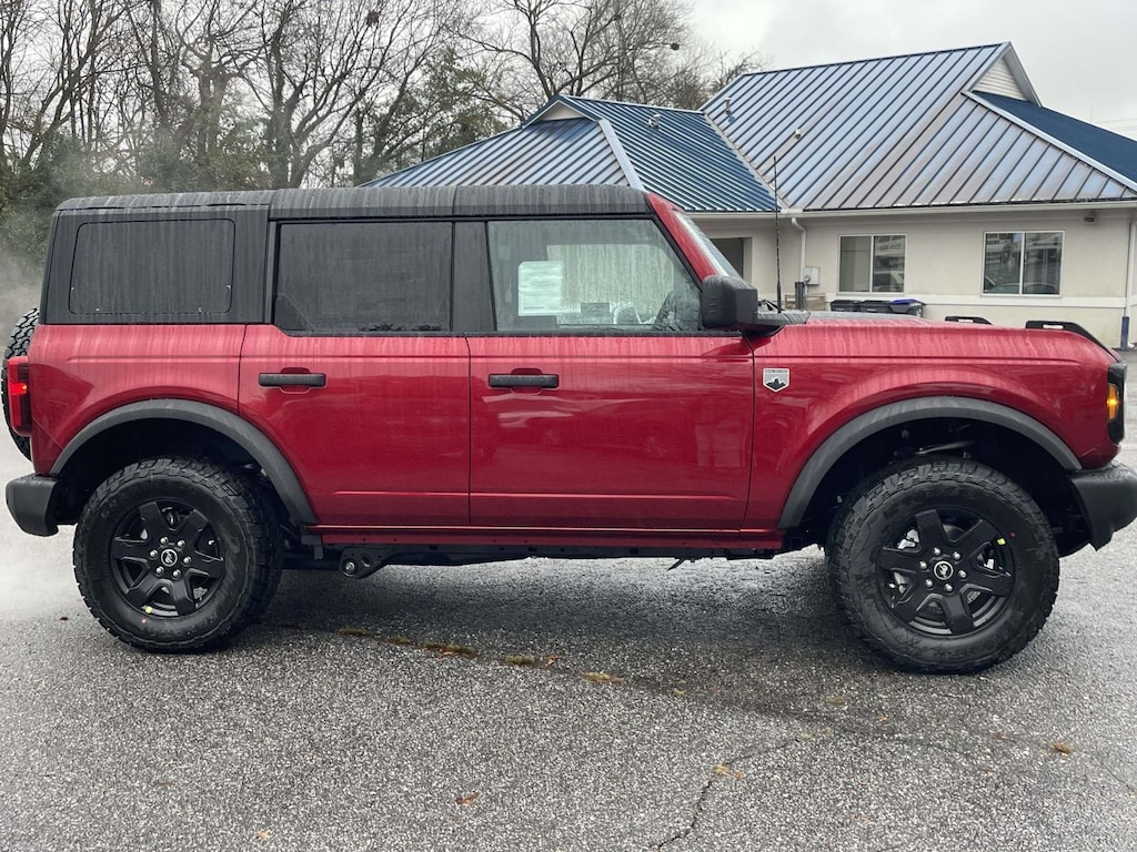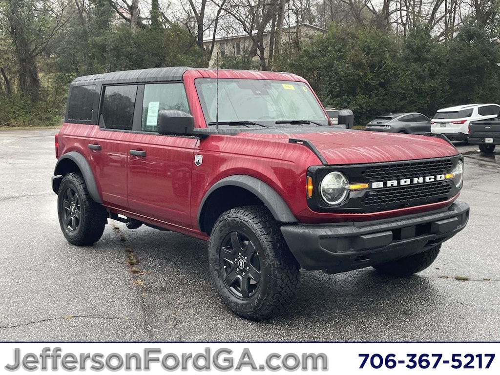 This 2025 Ford Bronco Big Bend in Ruby Red is equipped with. 4WD 10-Speed Automatic 2.3L EcoBoost I-4 ** Apple Car Play / Android Auto, Black Appearance Package, Black Molded-In-Color Door Handles, Black Molded-In-Color Fender Flares, Black Molded-In-Color Sideview Mirror Caps, Black-Painted Molded-In-Color Grille, Hard Top Sound Deadening Headliner, Rear-Window Defroster & Washer, Shadow Black Painted Hard Top.
