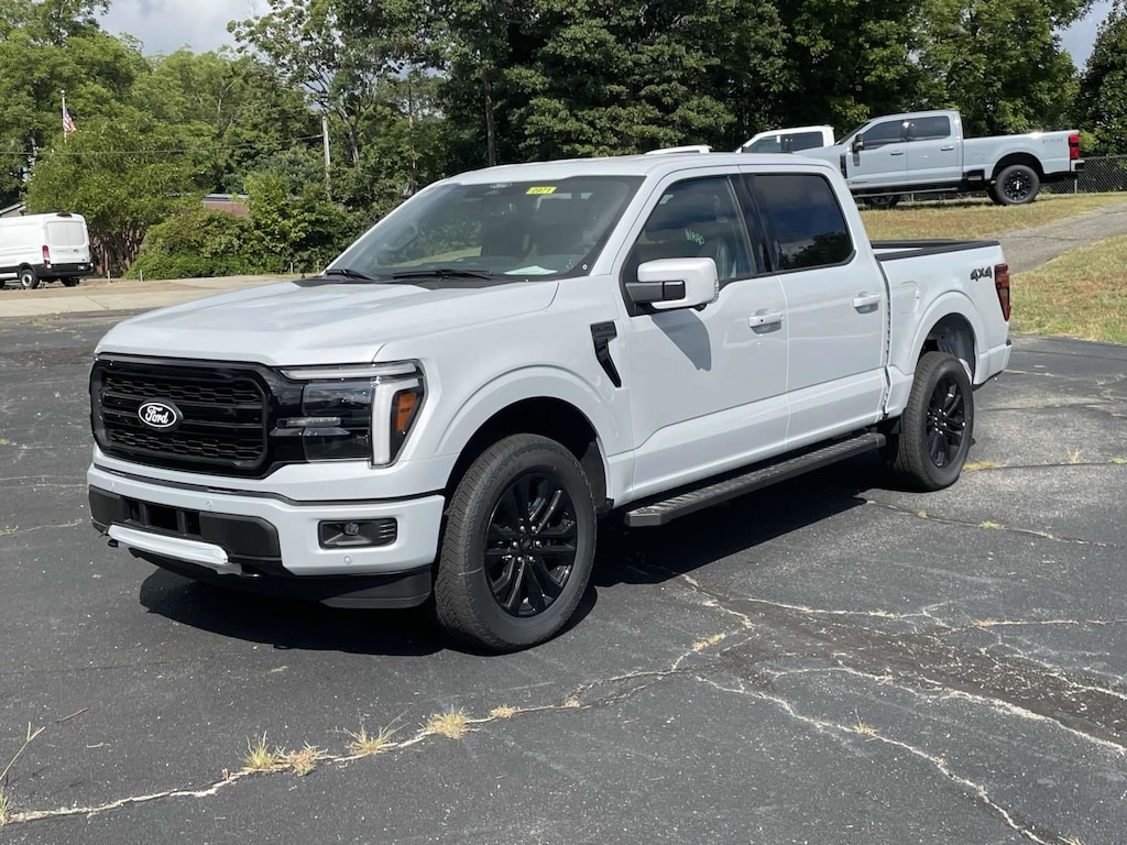 This 2025 Ford F-150 Lariat in Space White is equipped with 4WD 10-Speed Automatic 3.5L V6 EcoBoost ** Bluetooth, ** Apple Car Play / Android Auto, ** Back-Up Camera, ** Leather, 4WD, 6" Angular Bright Anodized Step Bar, Equipment Group 501A Mid, Illuminated Driver & Passenger Visors, Navigation system: Connected Navigation, Power-Sliding Rear Window, Radio: B&O Sound System by Bang & Olufsen, SYNC 4 w/Enhanced Voice Recognition, Wheels: 20" Chrome-Like PVD.