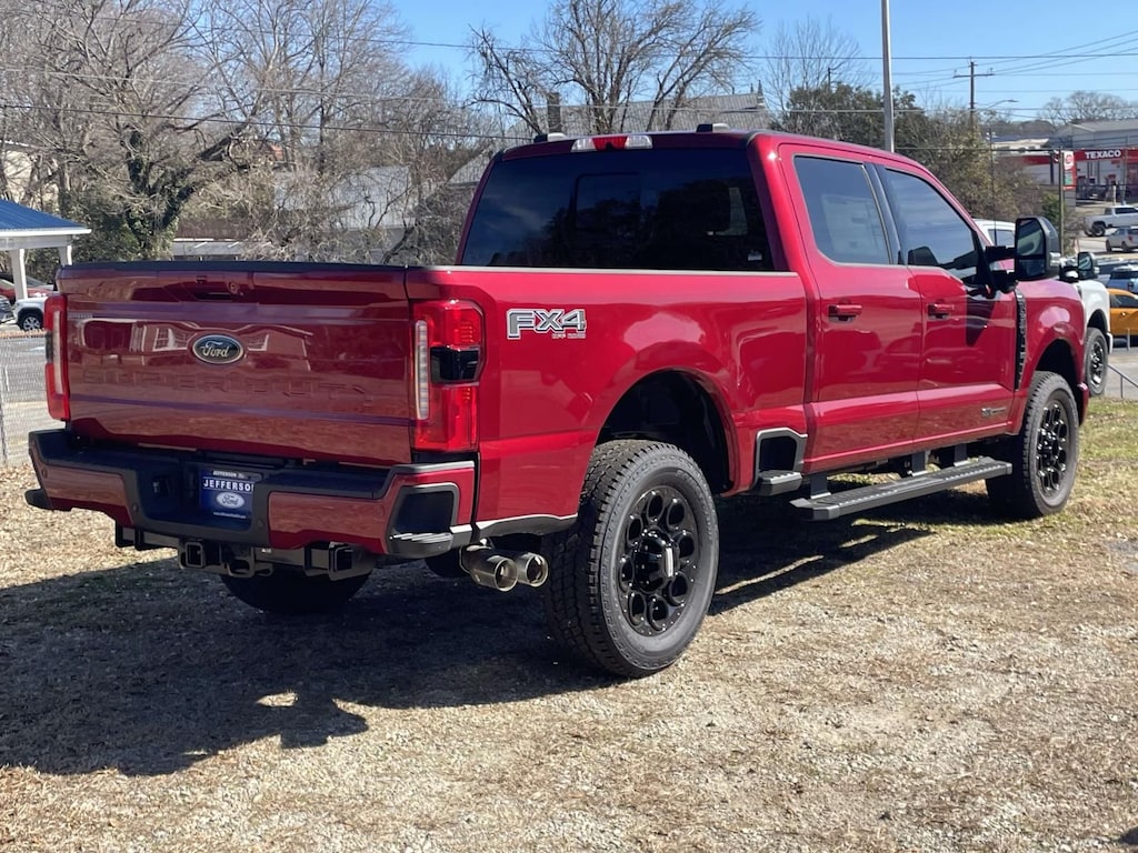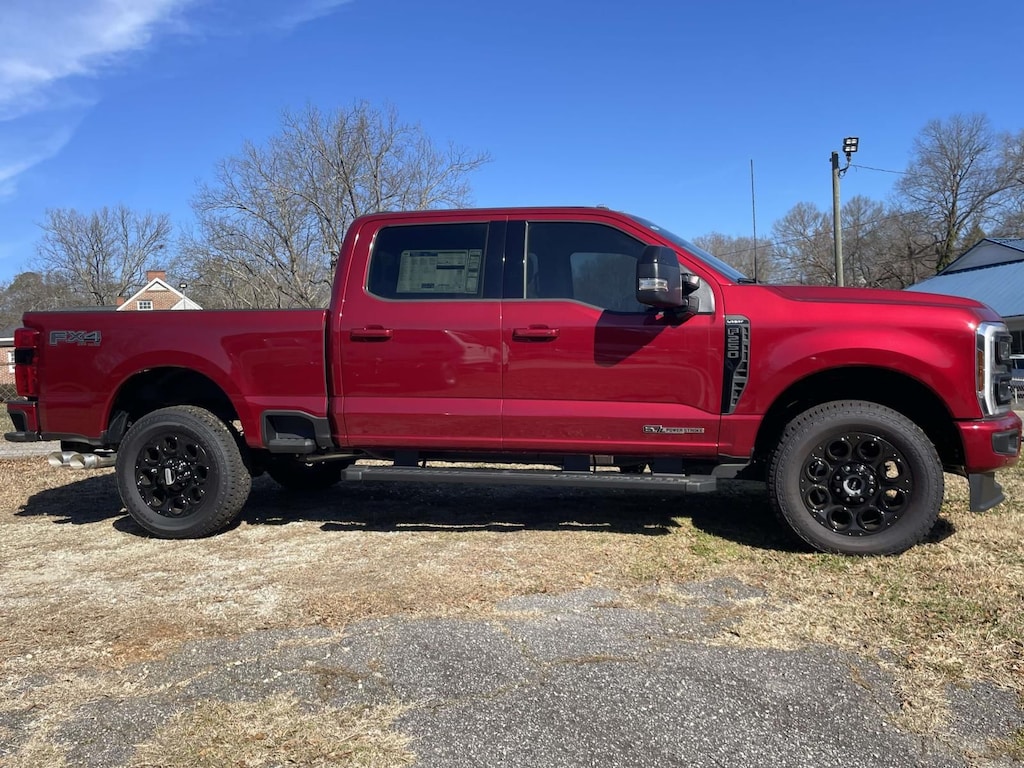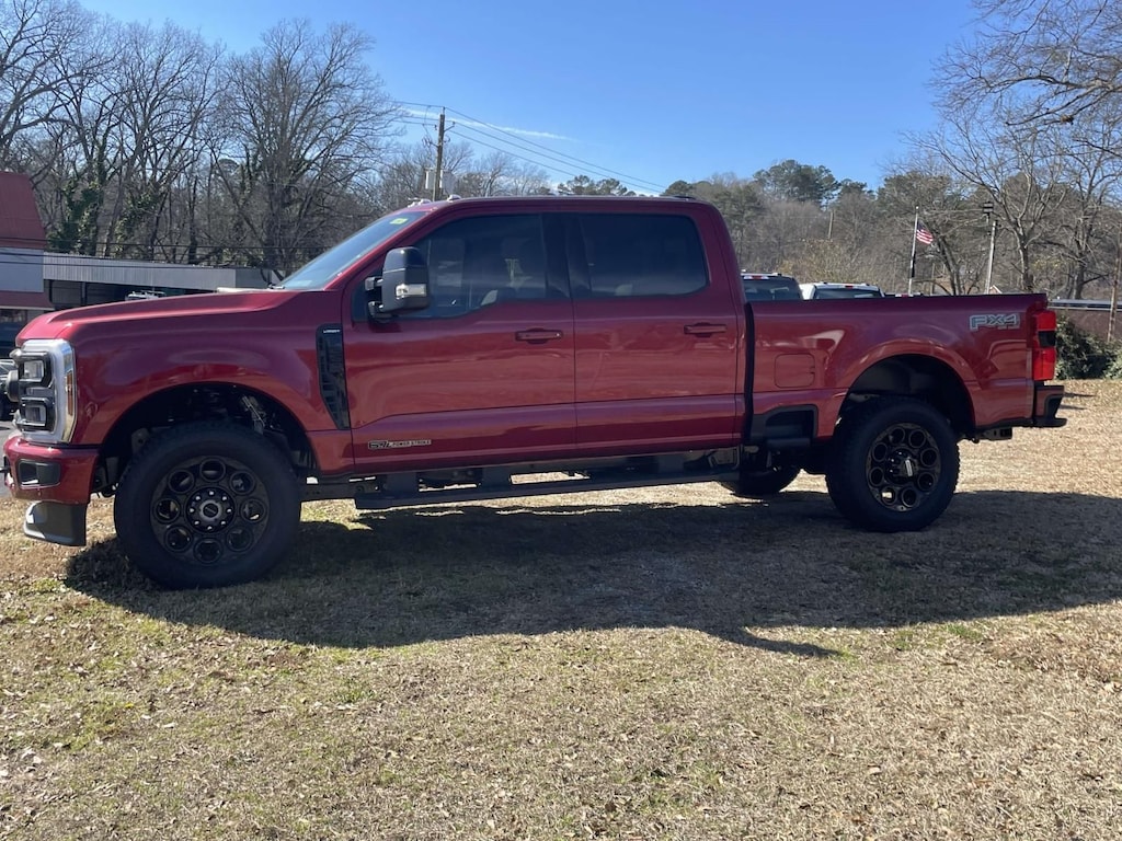 This 2025 Ford F-250SD in Ruby Red Metallic is equipped with. Lariat 4WD 10-Speed Automatic Power Stroke 6.7L V8 DI 32V OHV Turbodiesel 4WD.
