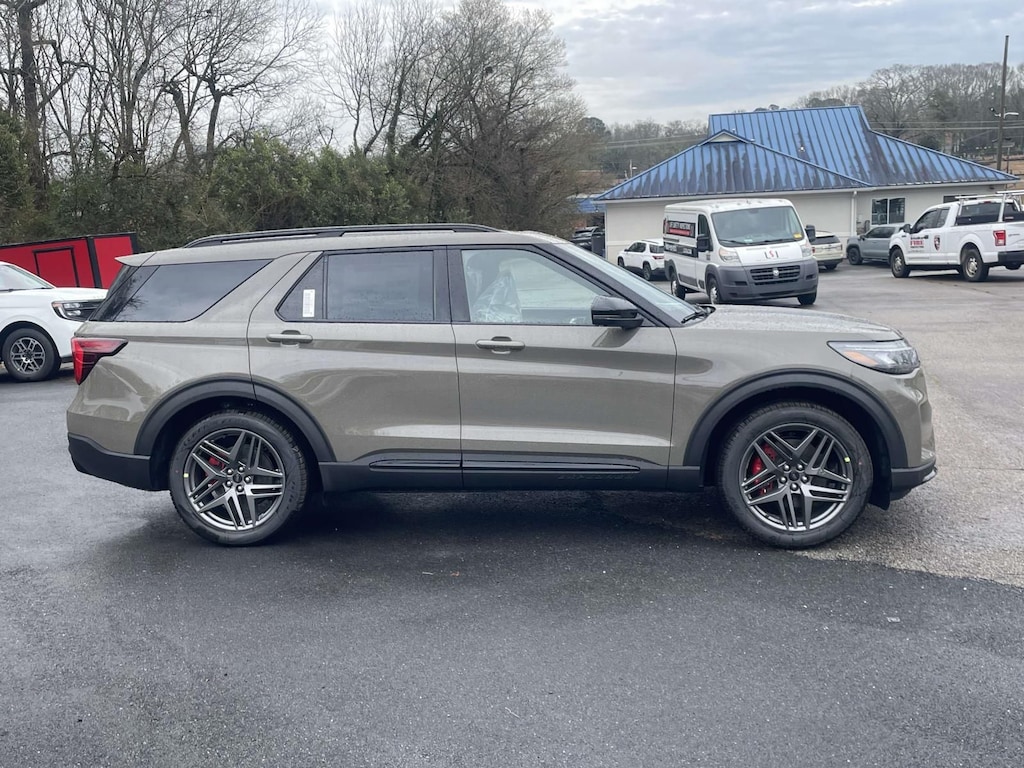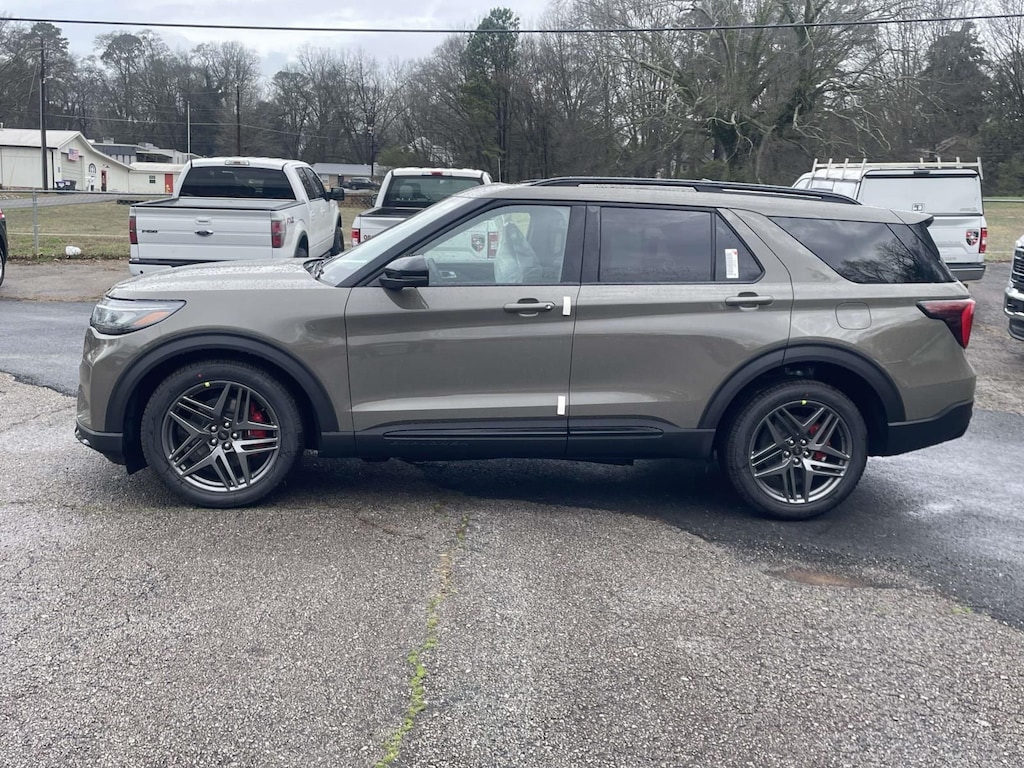 This great looking 2026 Ford Explorer ST 4WD in Marsh Gray is equipped with 10-Speed Automatic 3.0L EcoBoost V6, Equipment Group 400A Standard Package, Heated front seats, Heated rear seats, Heated steering wheel, Heated/Ventilated Miko Suede Captain's Chairs, Multicontour Seats with Front Active Motion, Panoramic Fixed Glass Roof with Power Shade, Radio: B&O Sound System by Bang and Olufsen, Ventilated front seats, Wheels: 21" Magnetite-Painted Aluminum.